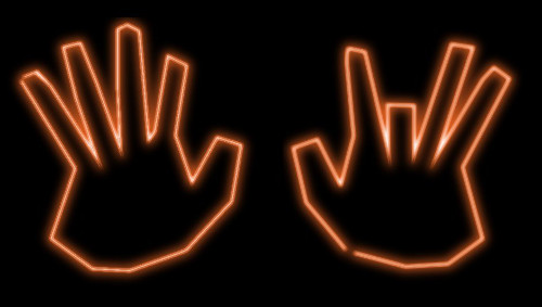 Spread your hands out with their backs facing you and thumbs and number them 1 to 10 to signify which number is to be the multiplier. Whichever number is to be multiplied will need bending down. We will only be using two digit numbers so numbers so tens are two the left of the bended digit and ones are two the left.
